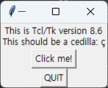 터미널에서 "python -m pytk"라고 입력하고 엔터를 치면 다음과 같은 윈도우가 표시된다.